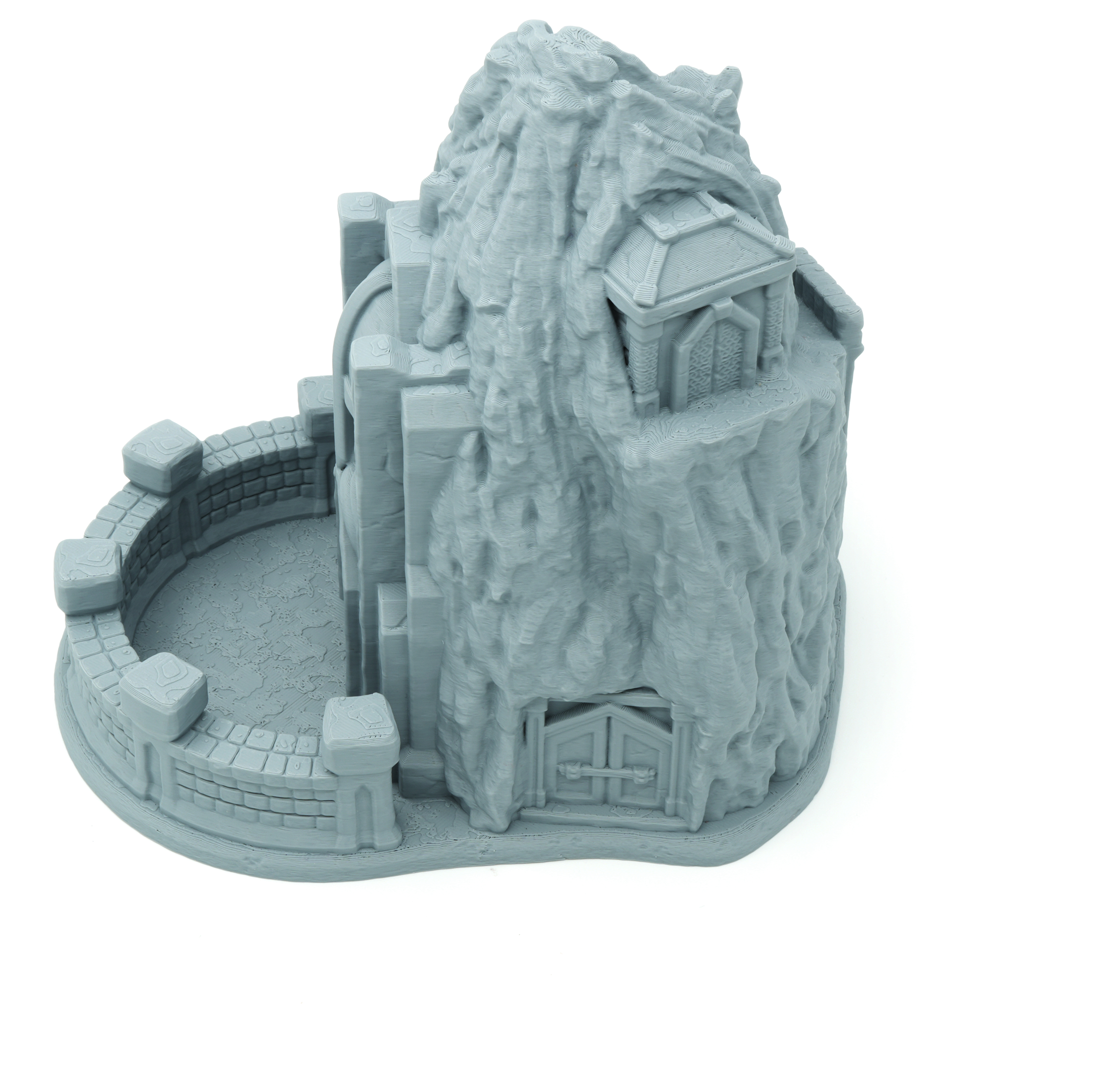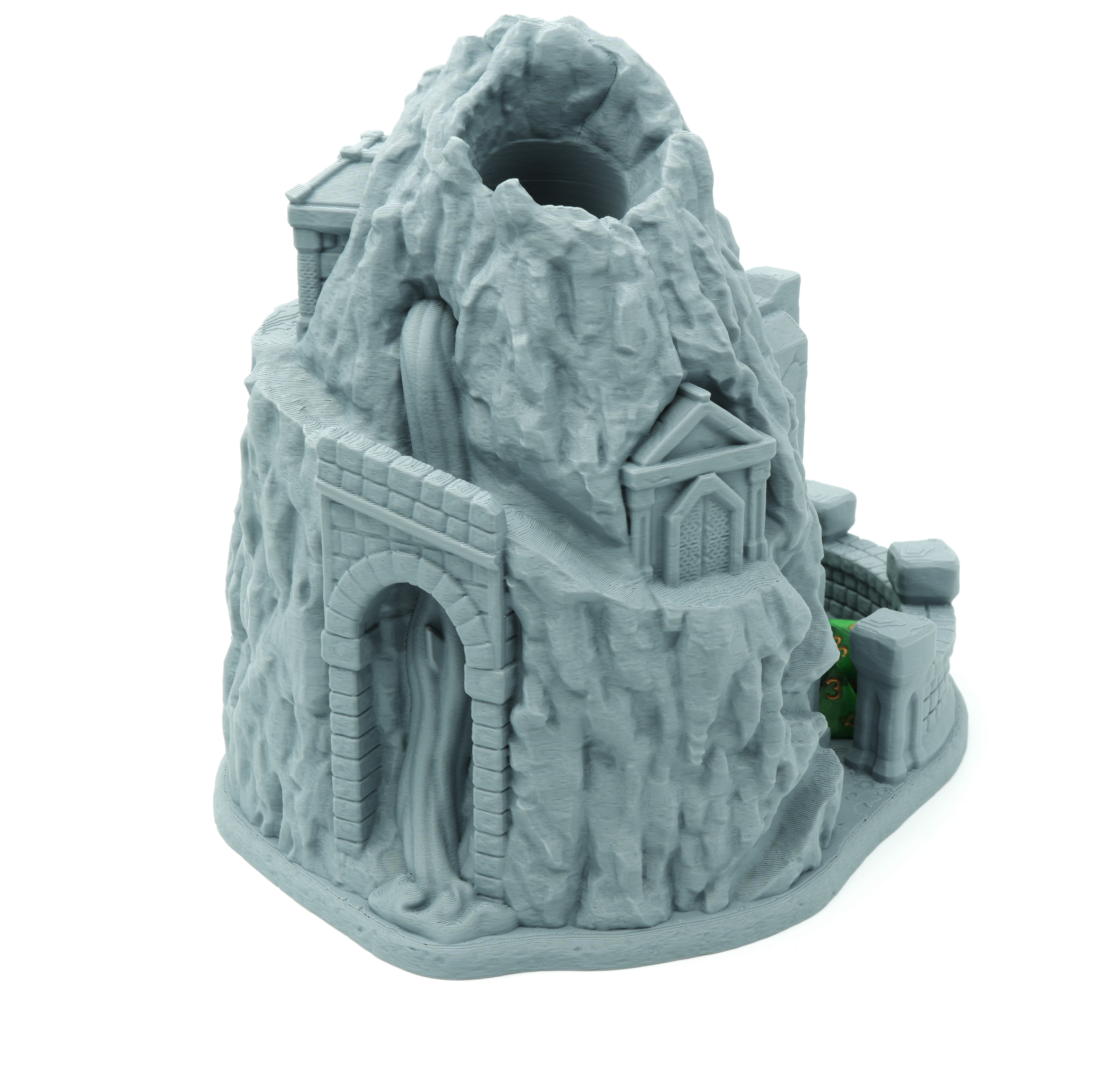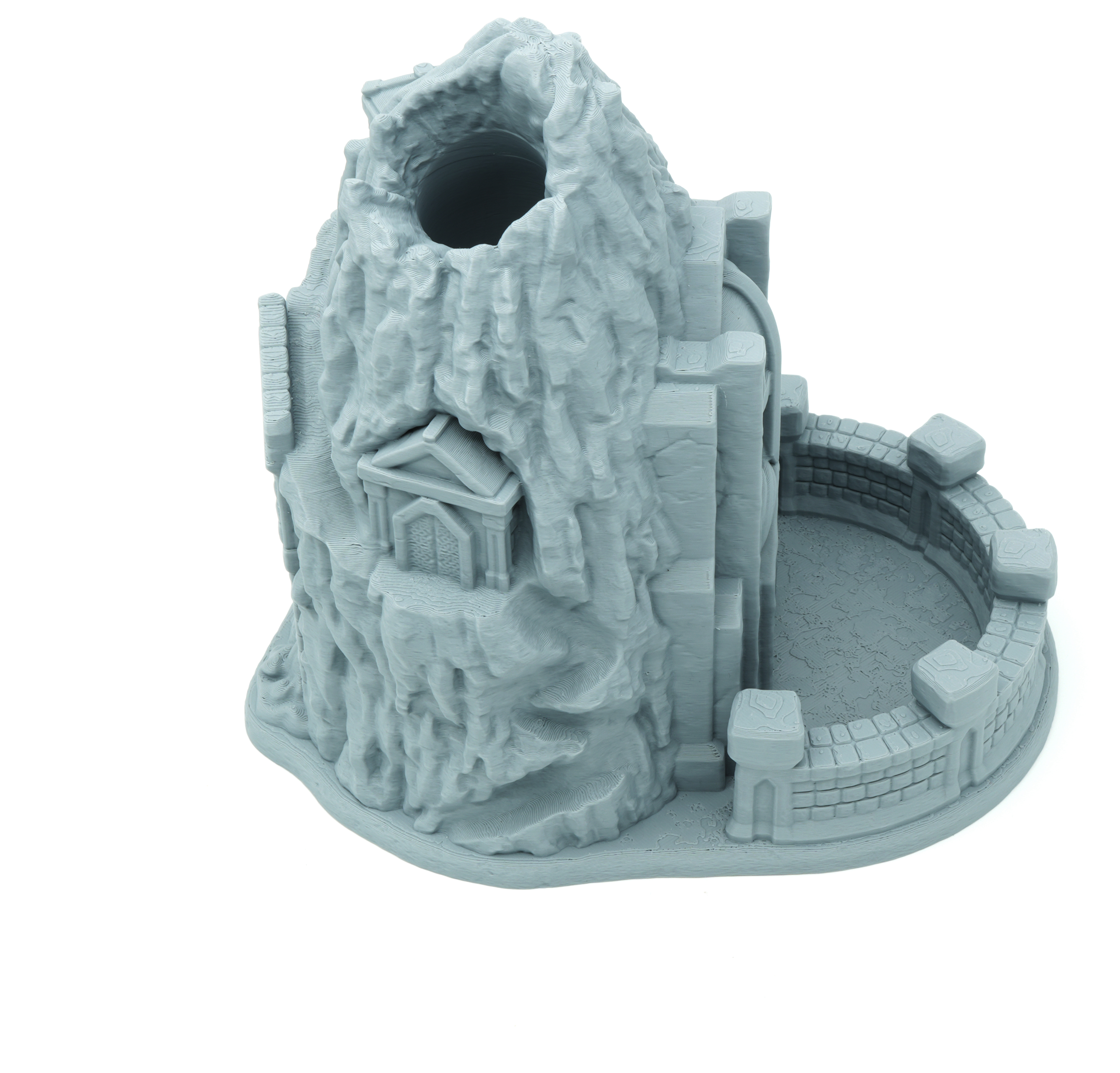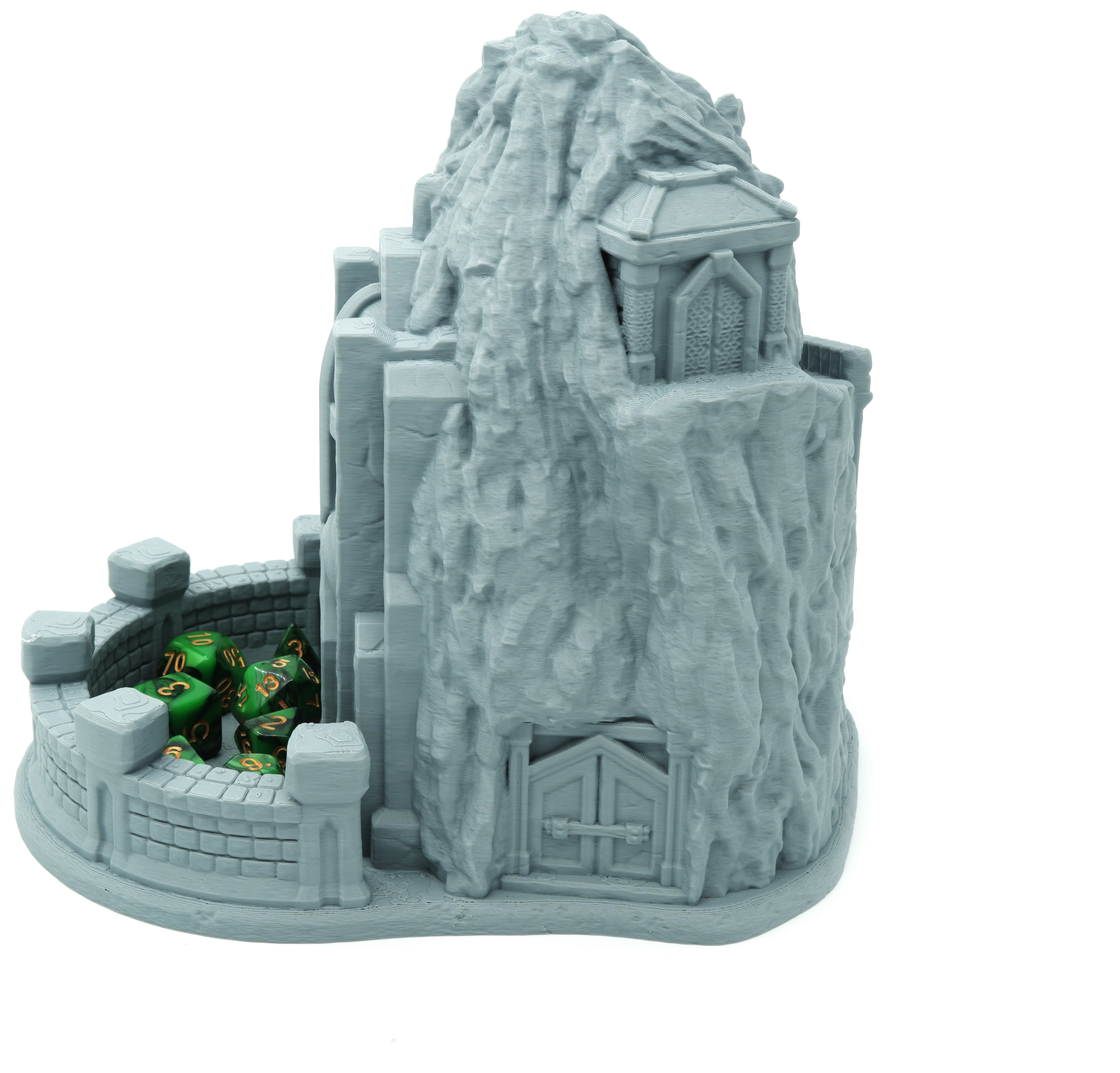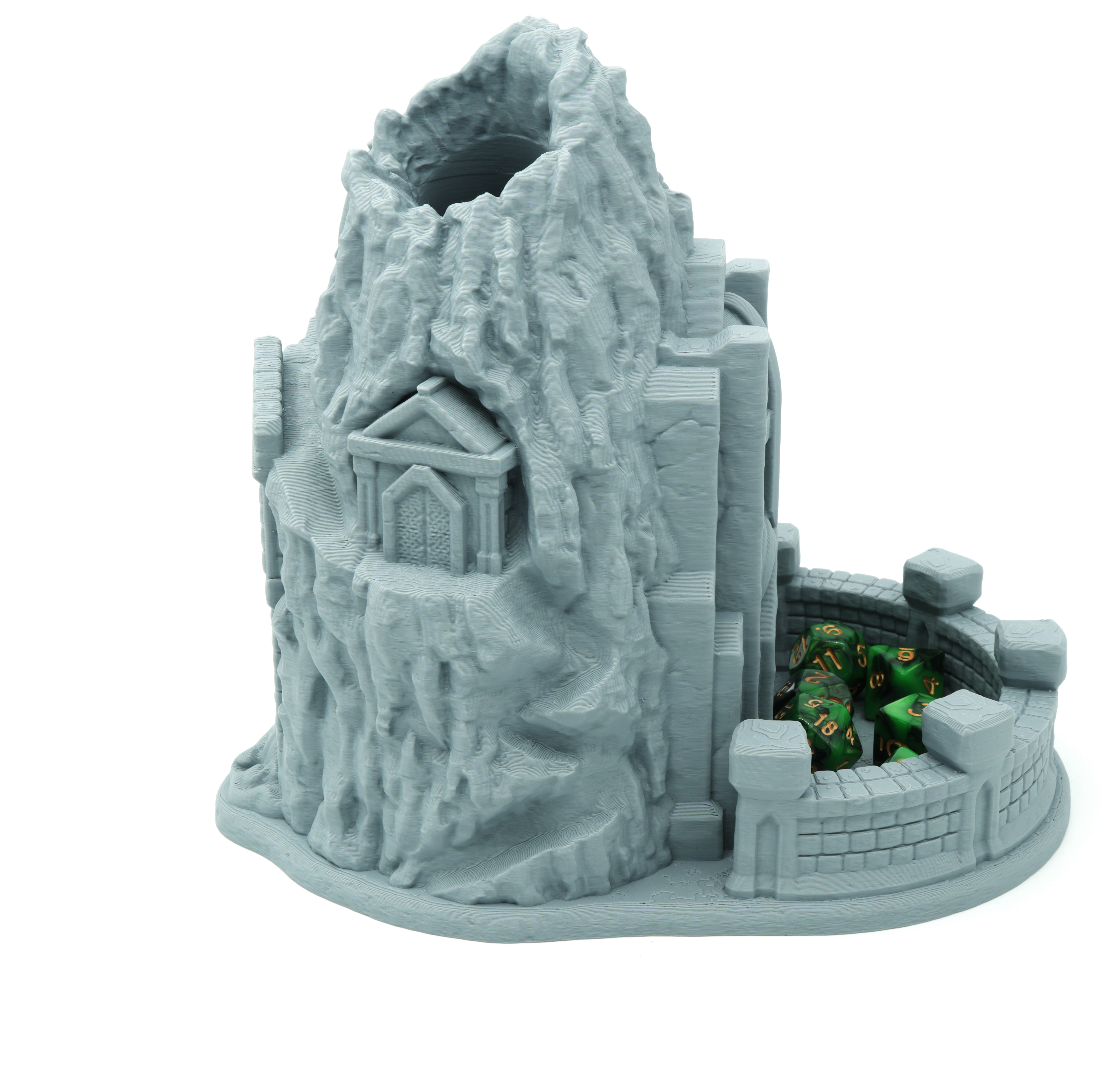 The tower stands 17.6 cm tall and features a stylish built-in dice tray resembling an inner courtyard.