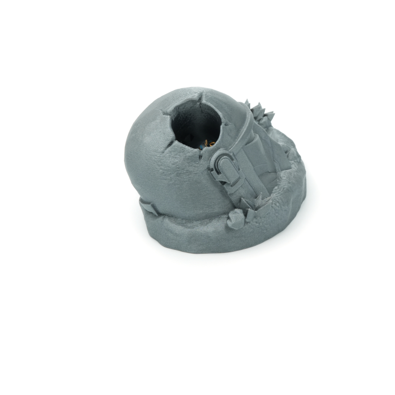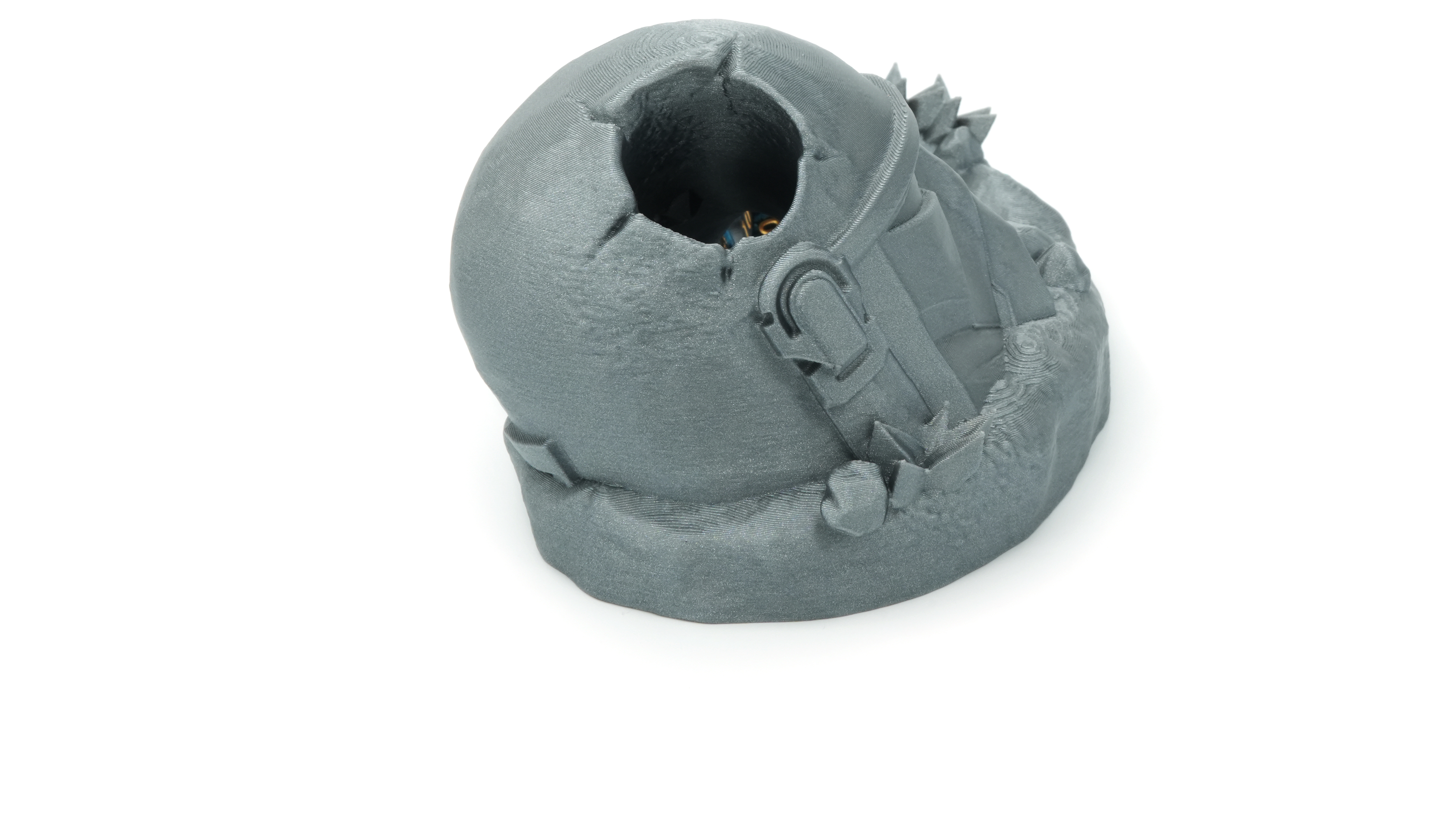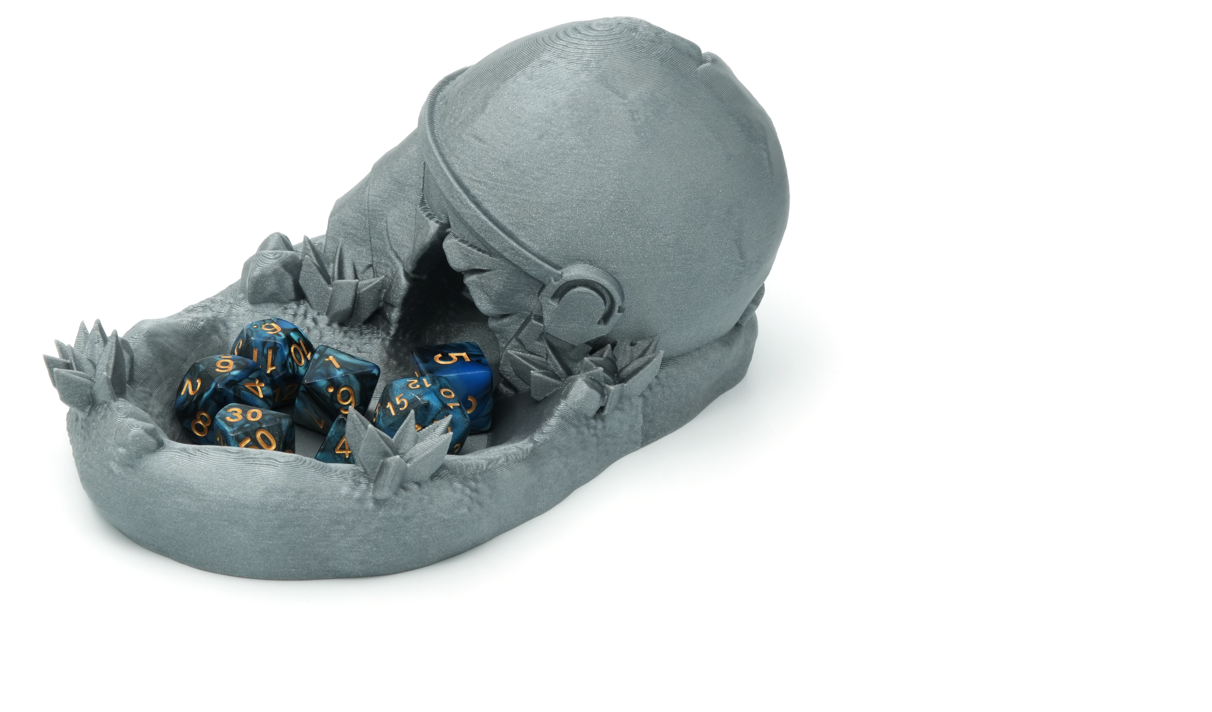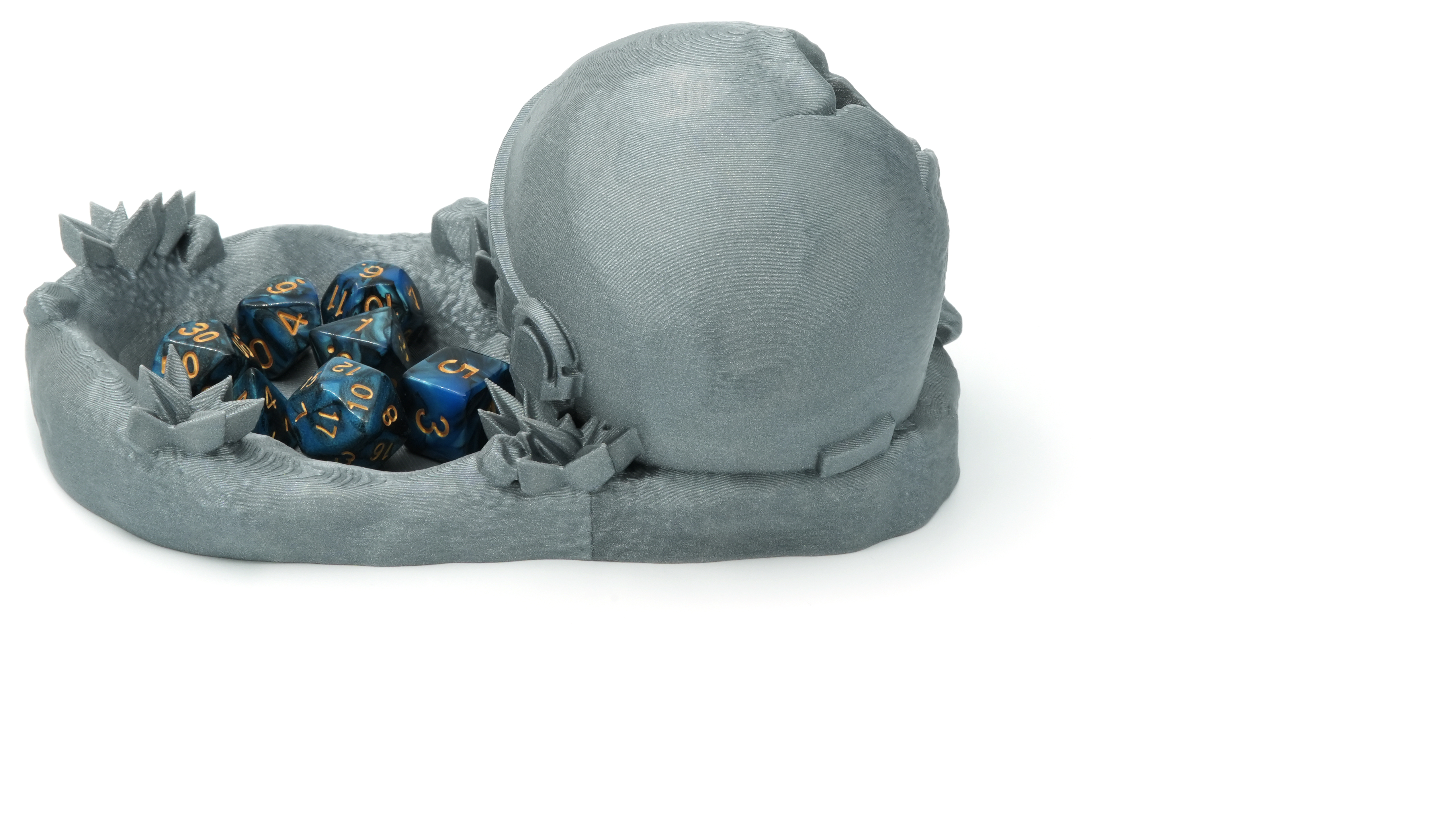 Dice are thrown through an opening at the top of the helmet, then roll through the interior and exit at the back, landing directly in the stylish, themed dice tray. 🔄⚙️