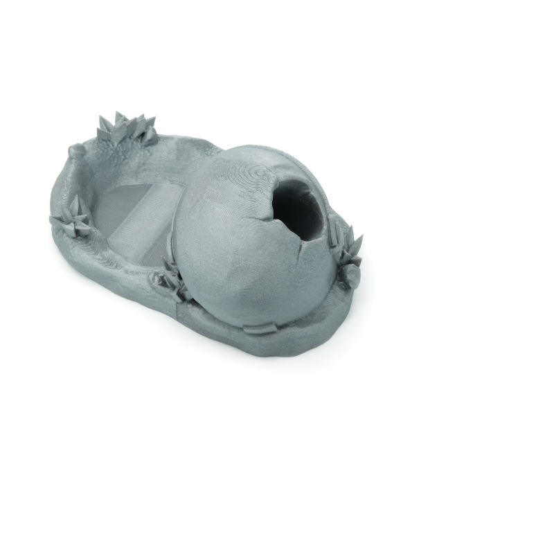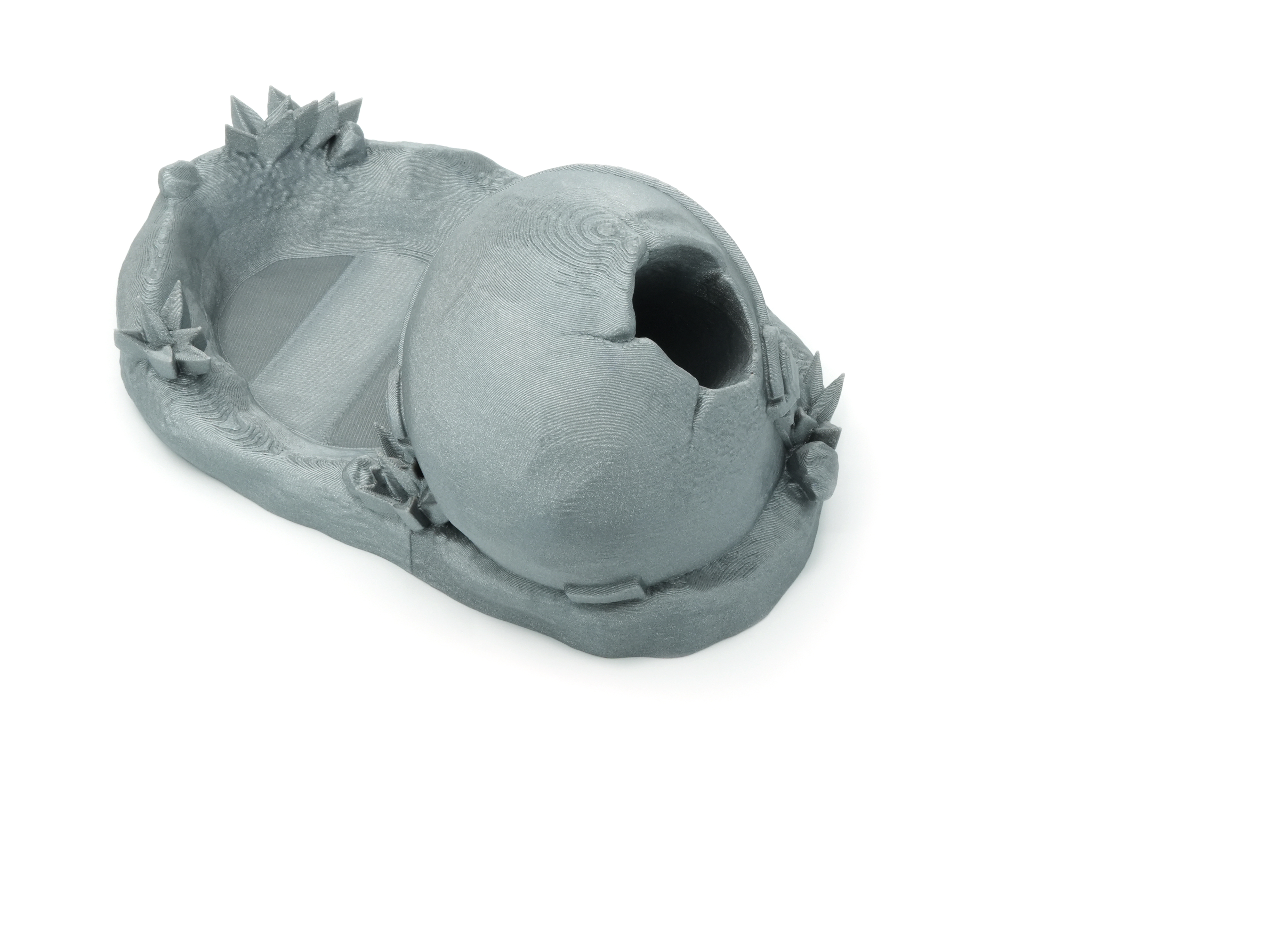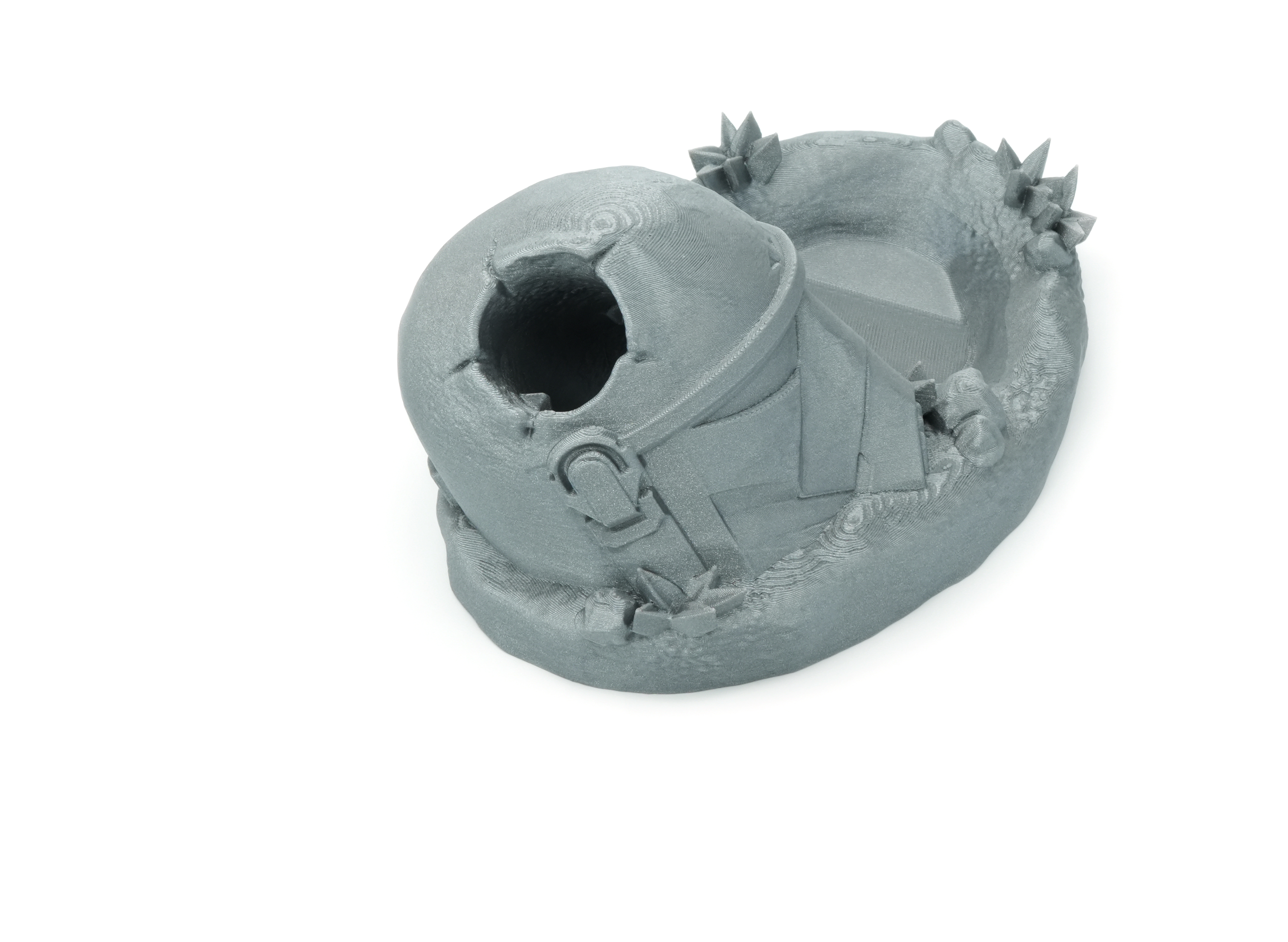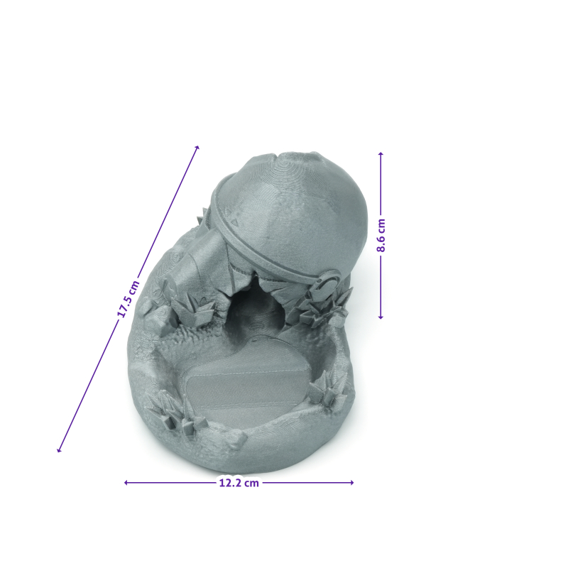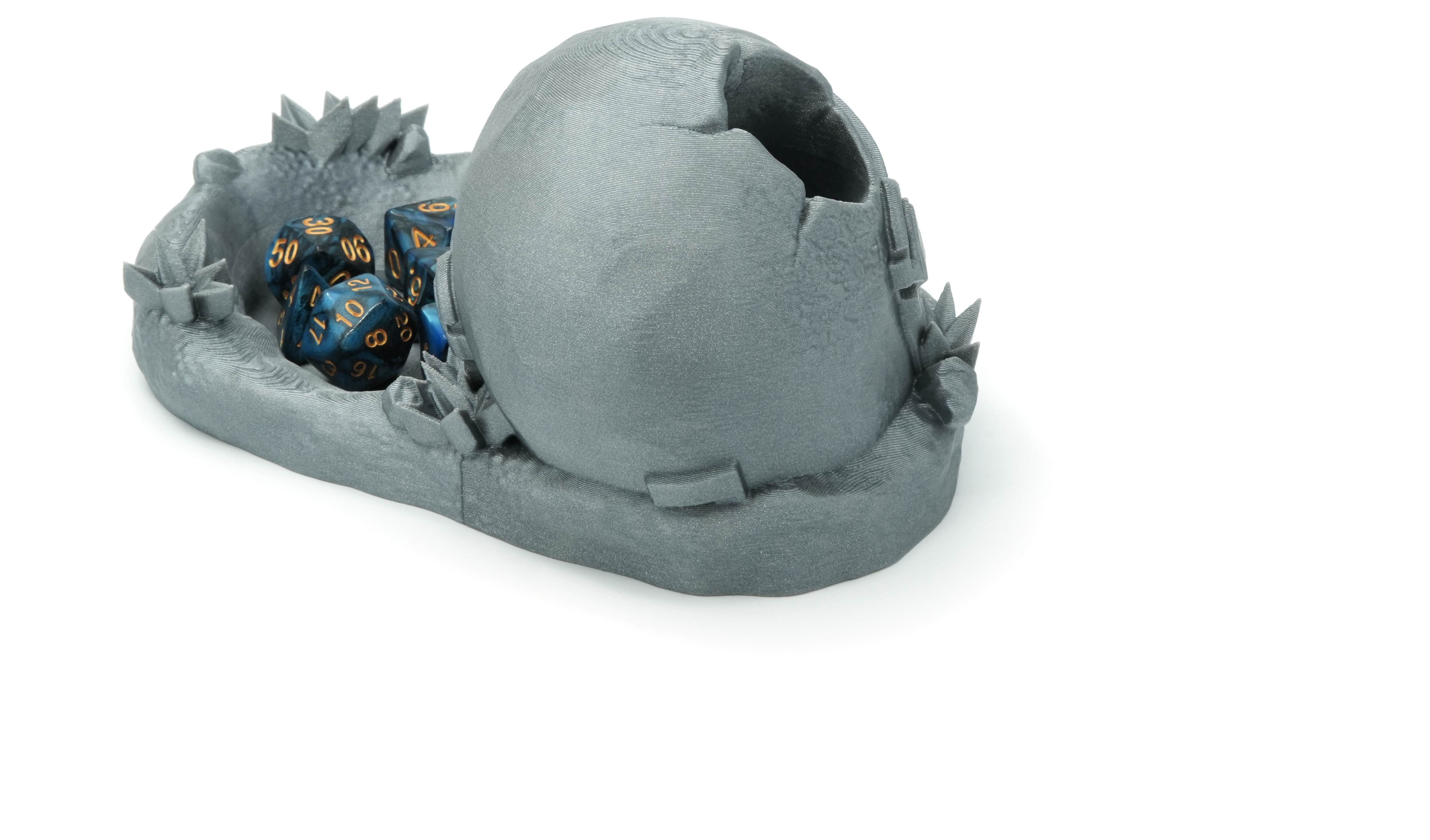 Dice are thrown through an opening at the top of the helmet, then roll through the interior and exit at the back, landing directly in the stylish, themed dice tray. 🔄⚙️