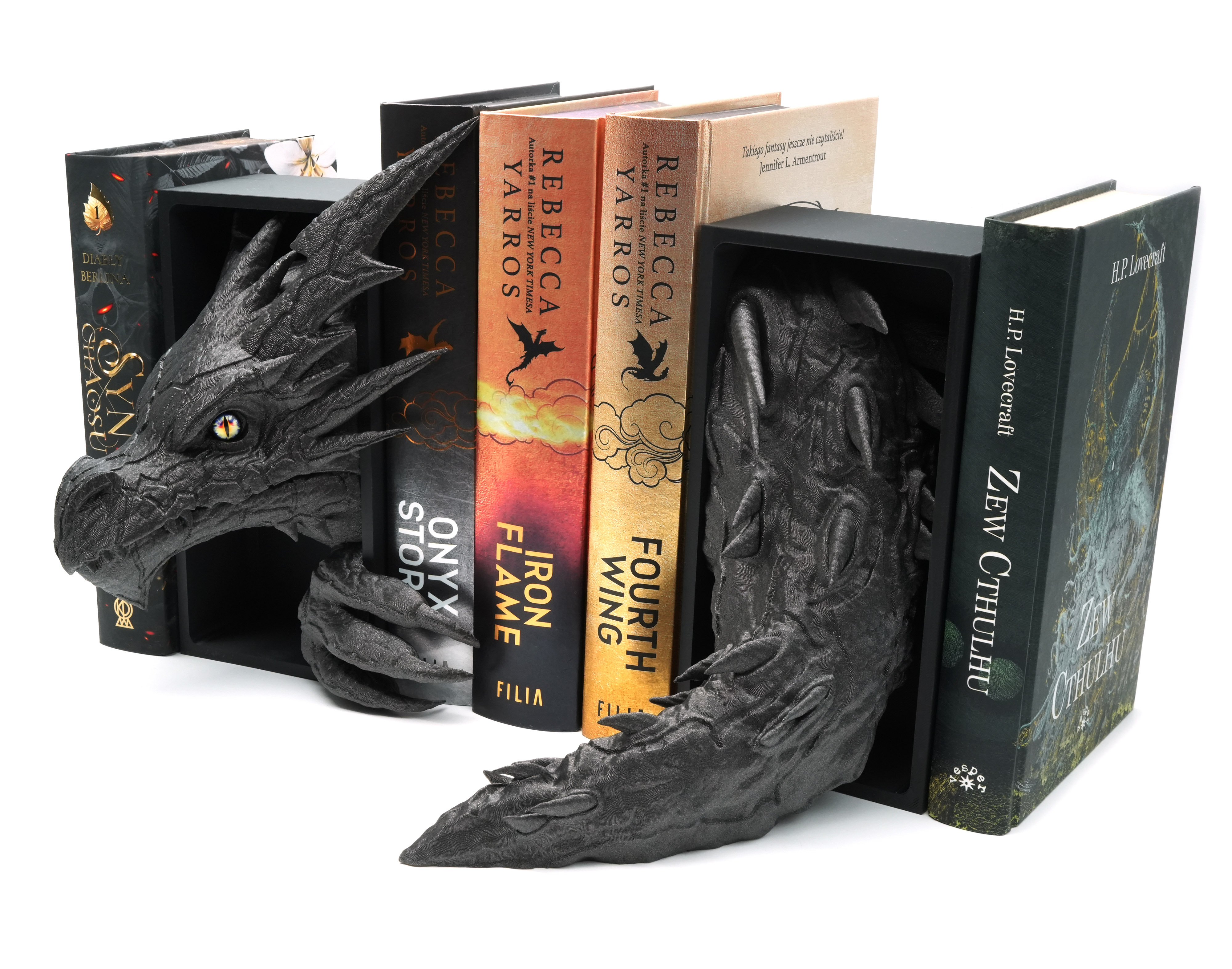 Głowa smoka błyskawicy z oczami ze źrenicami + ogon smoka - książkowy zakątek - Book Nook