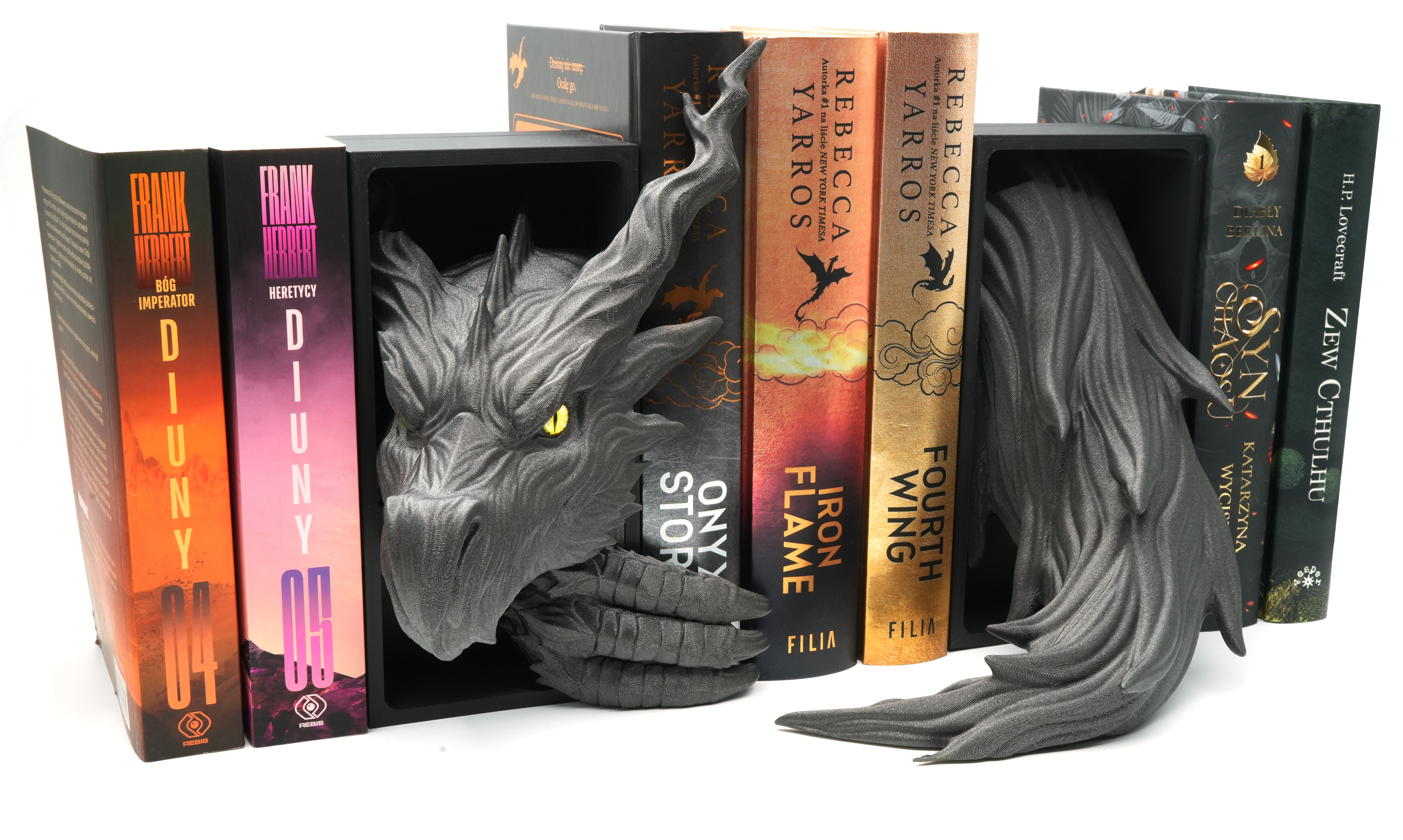 Głowa smoka cienia z oczami ze źrenicami + ogon smoka - książkowy zakątek - Book Nook
