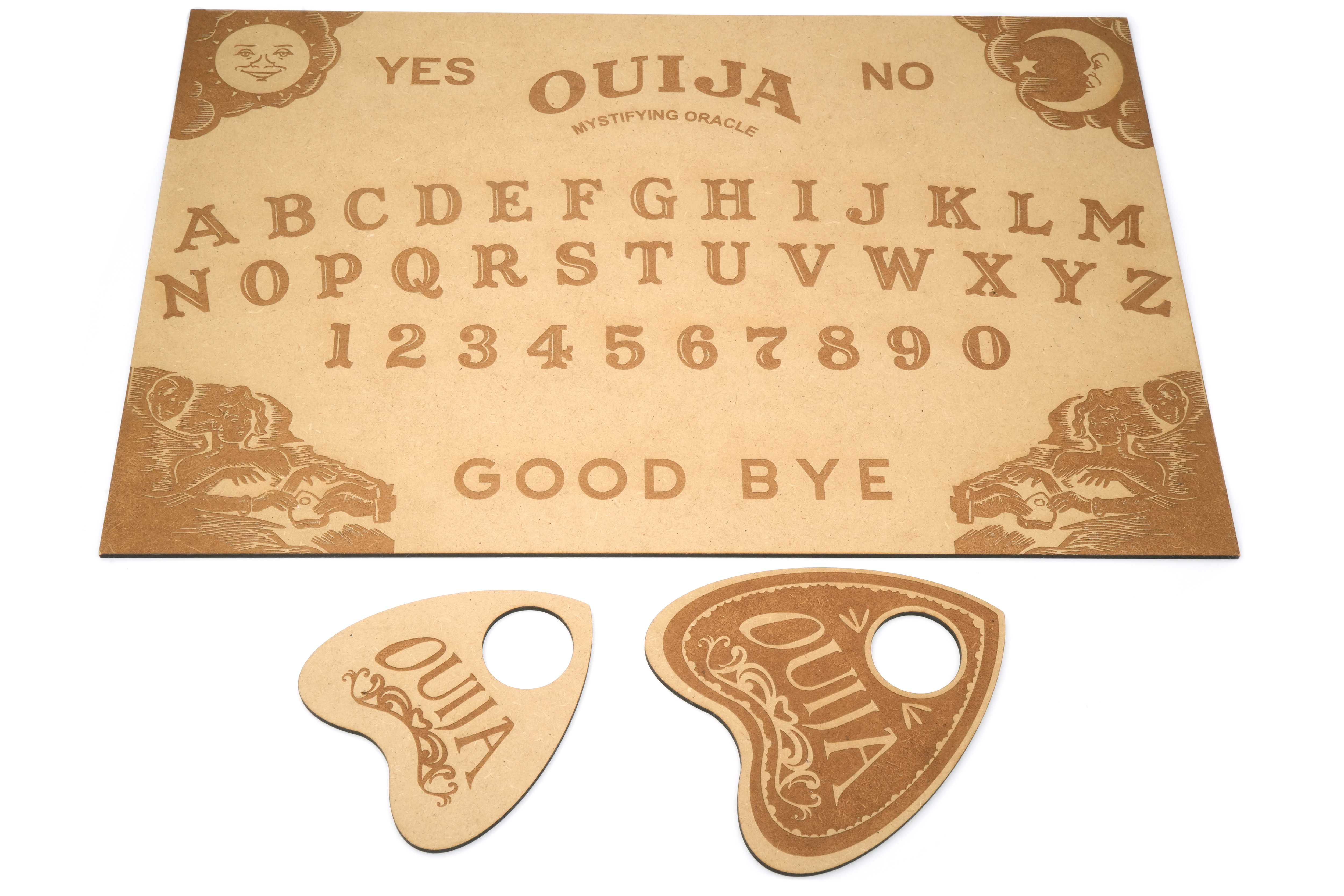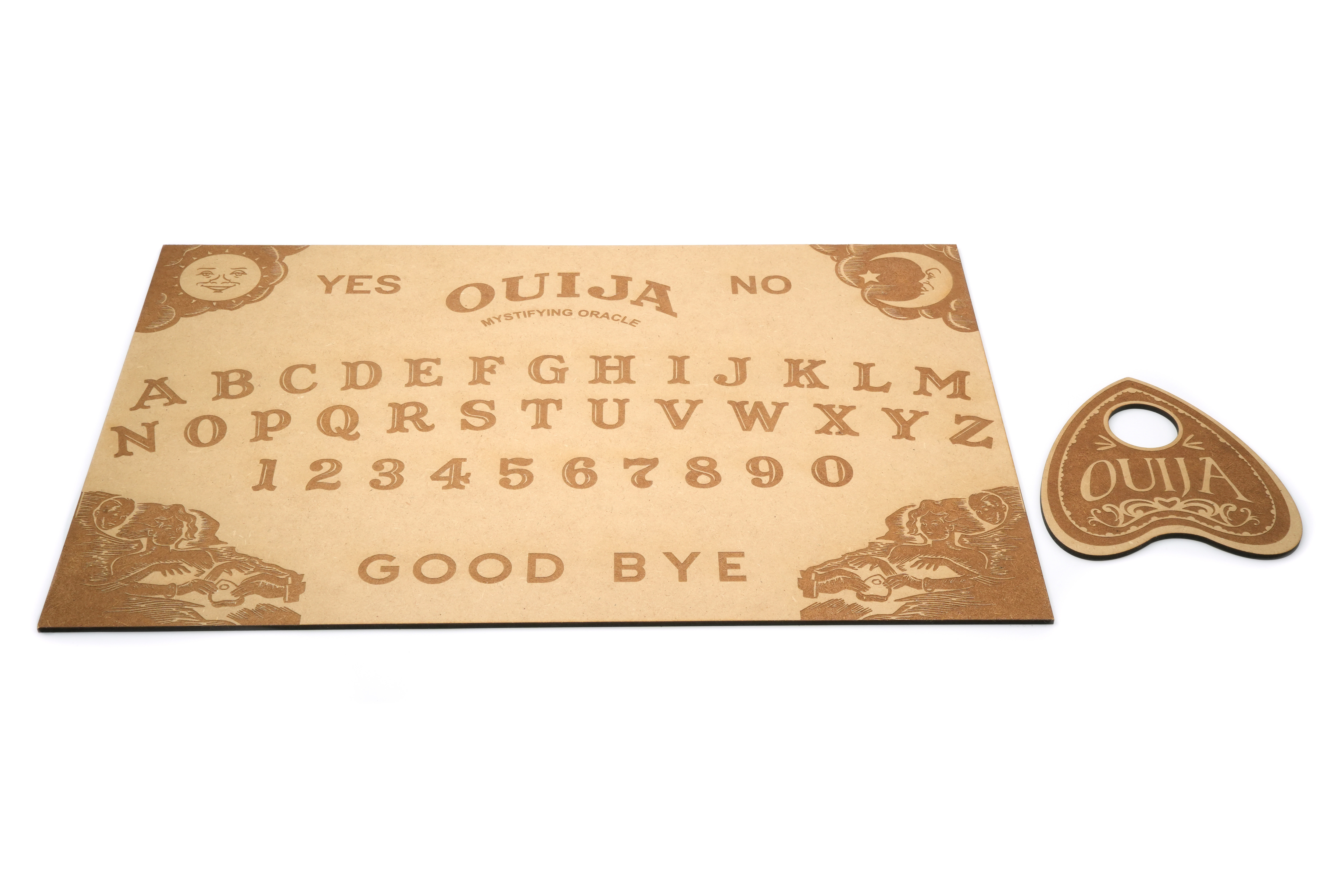 Nasza drewniana tablica OUIJA z precyzyjnym grawerem to idealne narzędzie do odkrywania nieznanego! 🖤🌕