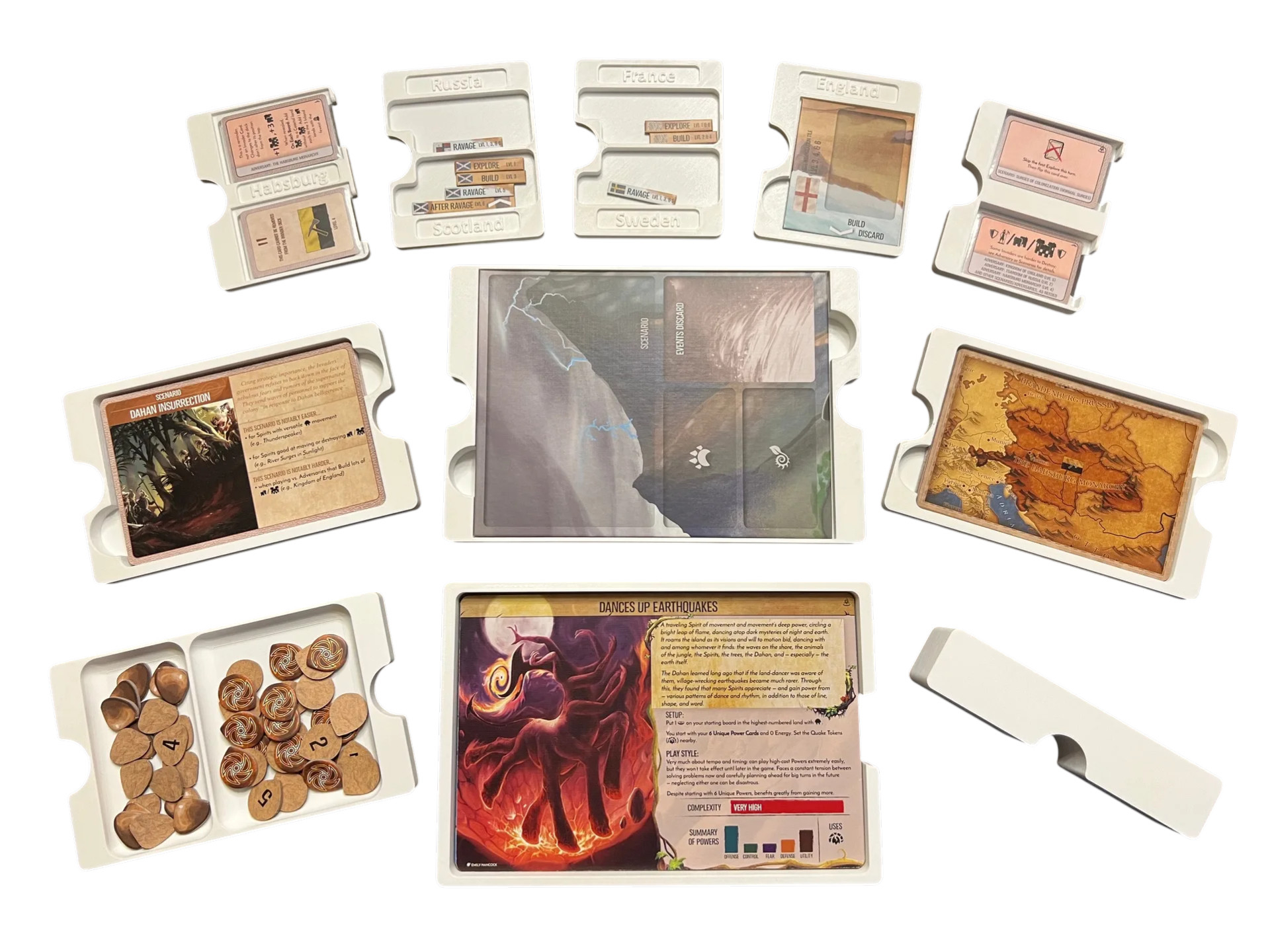 Jeśli Twoja kolekcja Spirit Island rozrosła się do pełnych rozmiarów i chcesz skrócić przygotowanie gry do kilku minut – ten organizer pozwoli Ci skupić się na tym, co najważniejsze: obronie wyspy przed najeźdźcami 🌿🔥