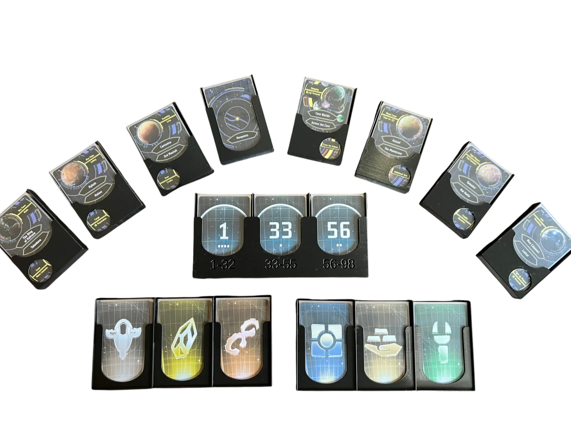 Specjalne wycięcia w rogach pozwalają zachować widoczność informacji znajdujących się na kartach – nic nie zasłania istotnych danych dotyczących odwiedzanej planety.