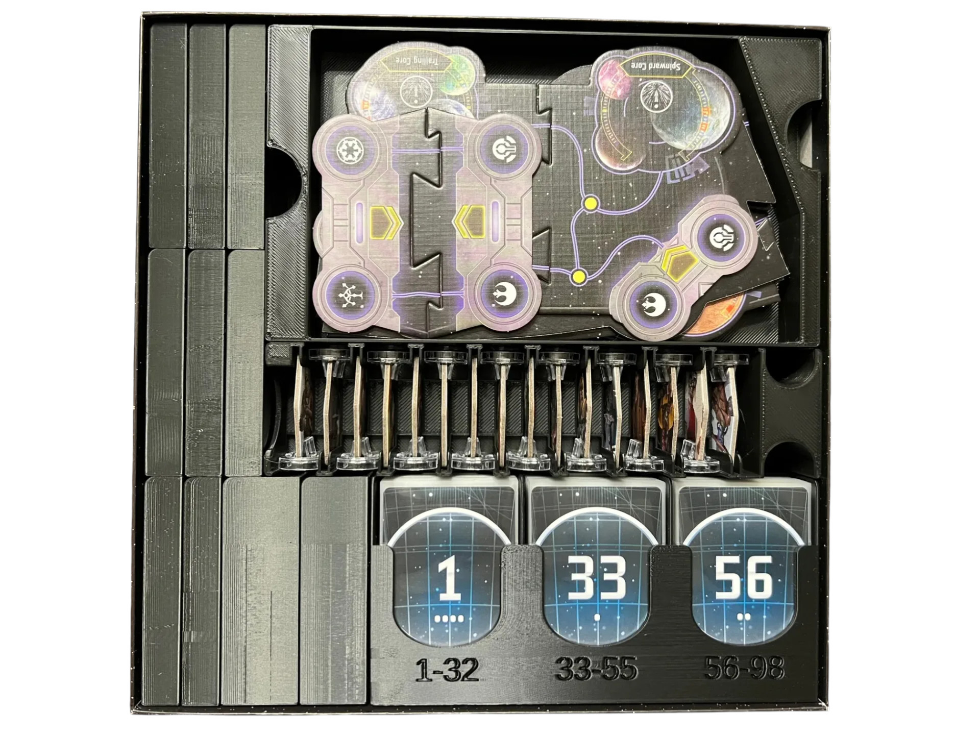 Zaprowadź porządek w galaktyce i skróć przygotowanie rozgrywki do minimum! Ten organizer został zaprojektowany specjalnie do gry Star Wars: Outer Rim wraz z dodatkiem Unfinished Business, aby usprawnić setup, uporządkować wszystkie komponenty i zwiększyć komfort gry przy stole.