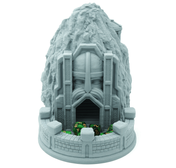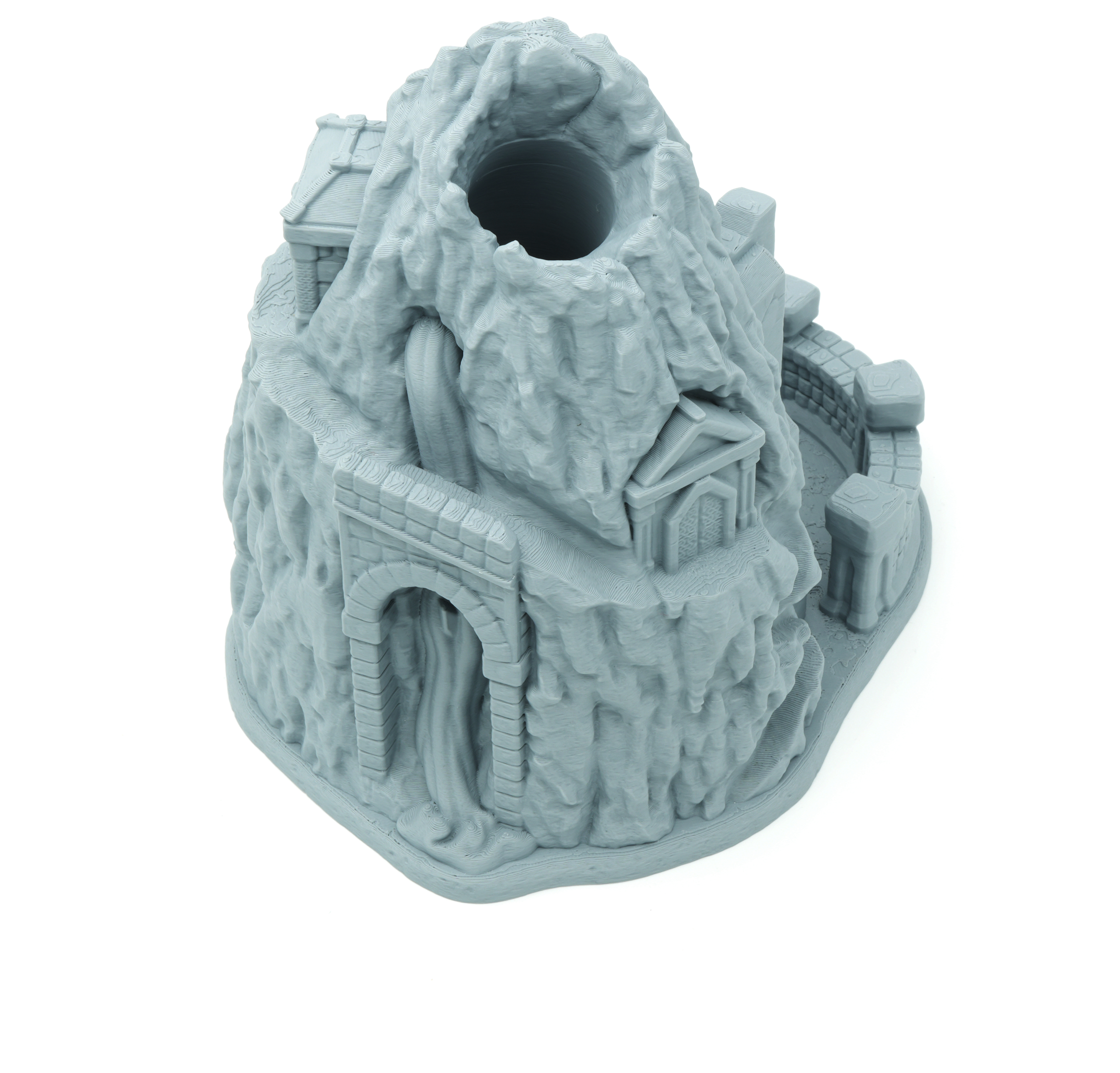 Wieża ma wysokość 17,6 cm i posiada stylowy, wbudowany dice tray przypominający wewnętrzny dziedziniec.