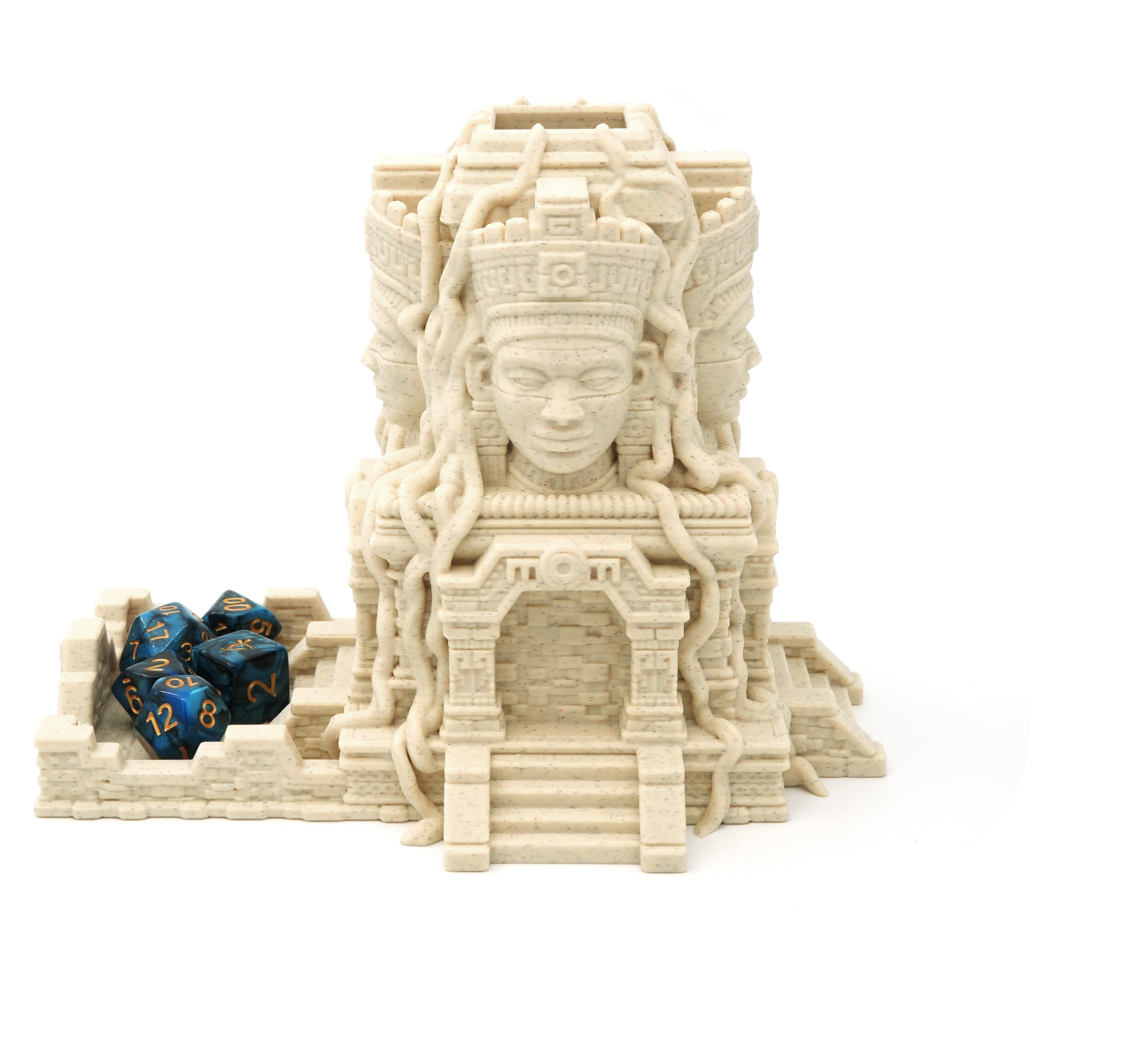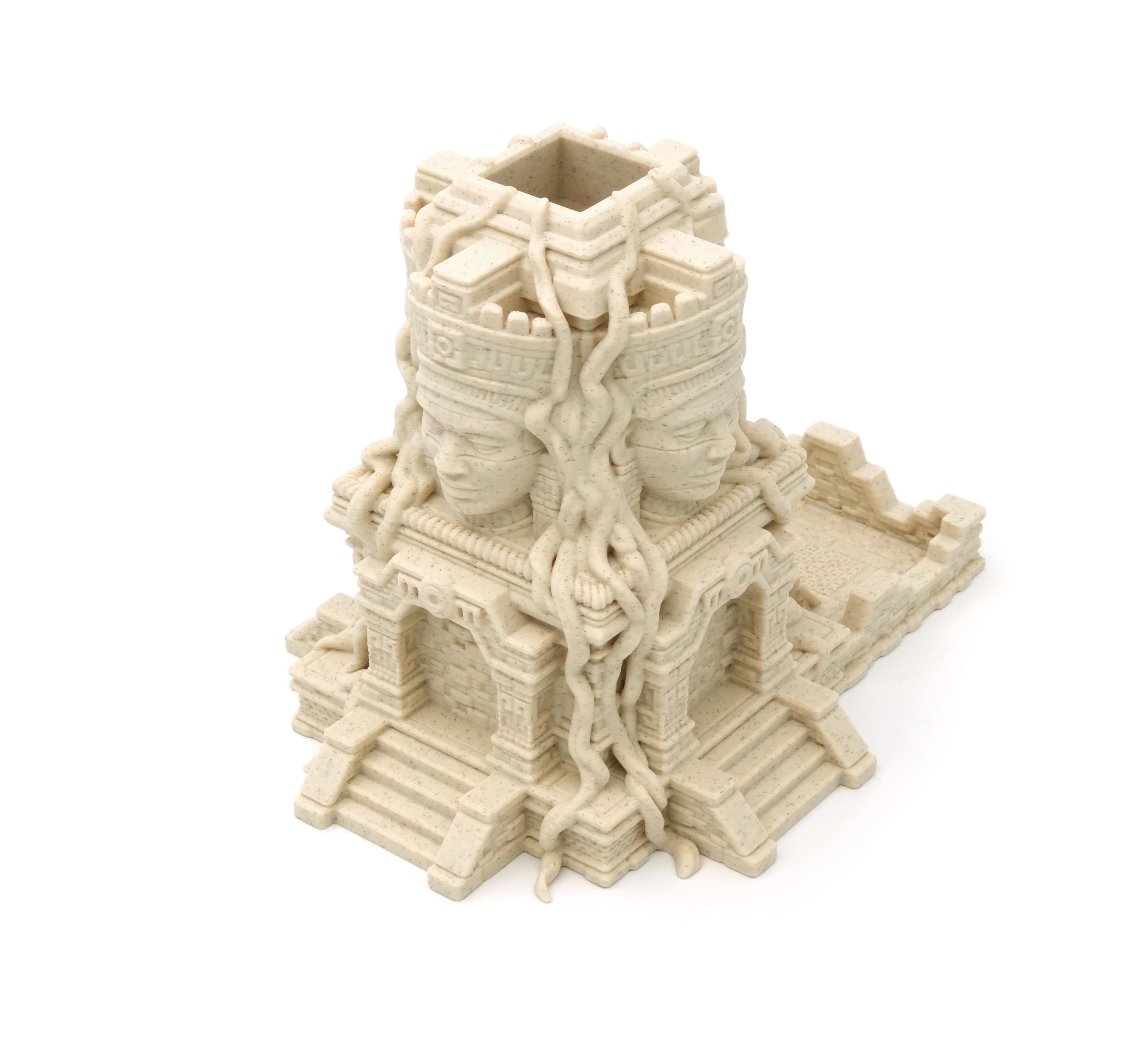 Wieża ma wysokość 17,3 cm i posiada wbudowany dice tray stylizowany na kamienny dziedziniec świątyni.