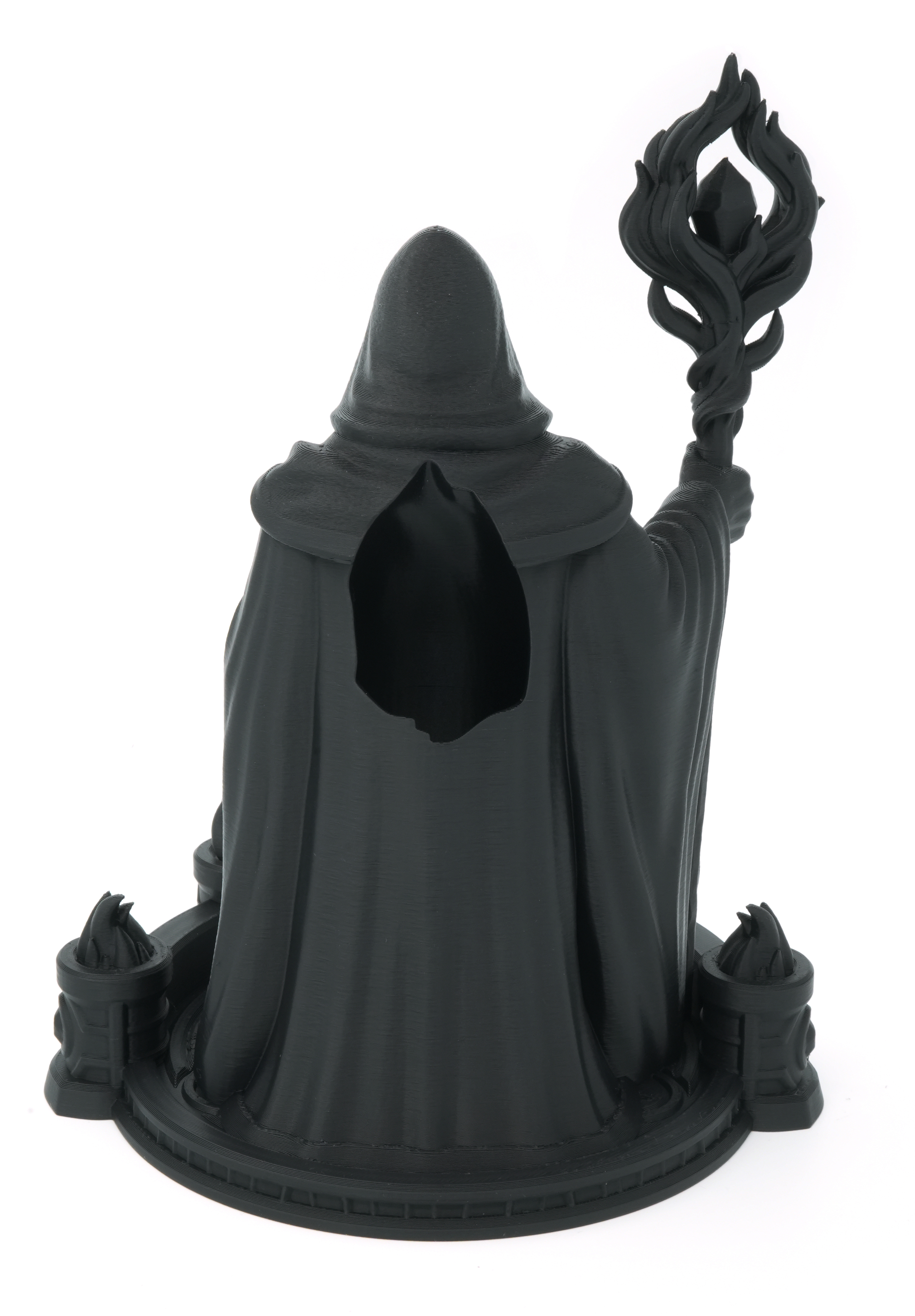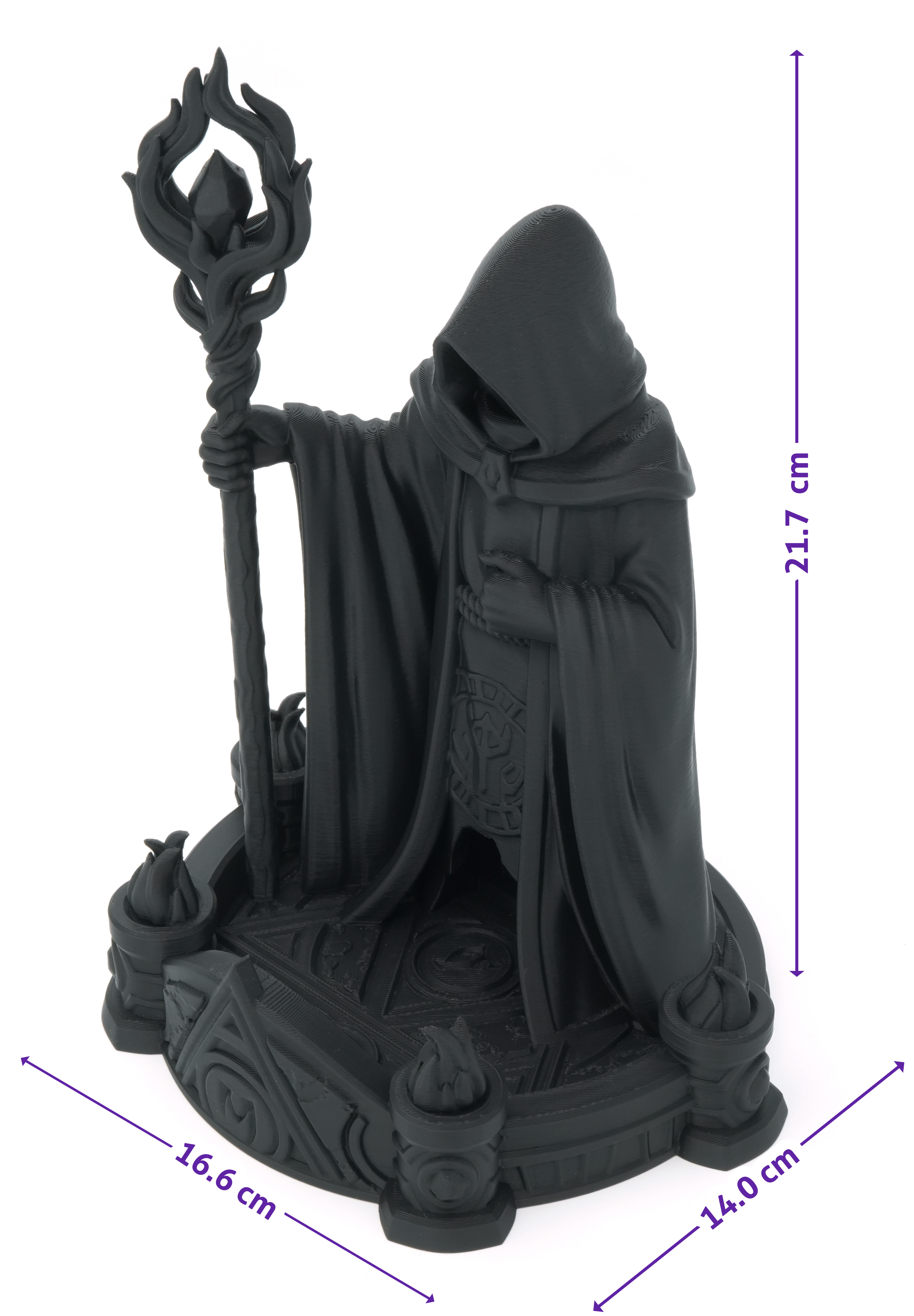 Projekt inspirowany jest mrocznym fantasy – długie szaty, kaptur, magiczne insygnia i rytualna podstawa tworzą wyjątkowy klimat.