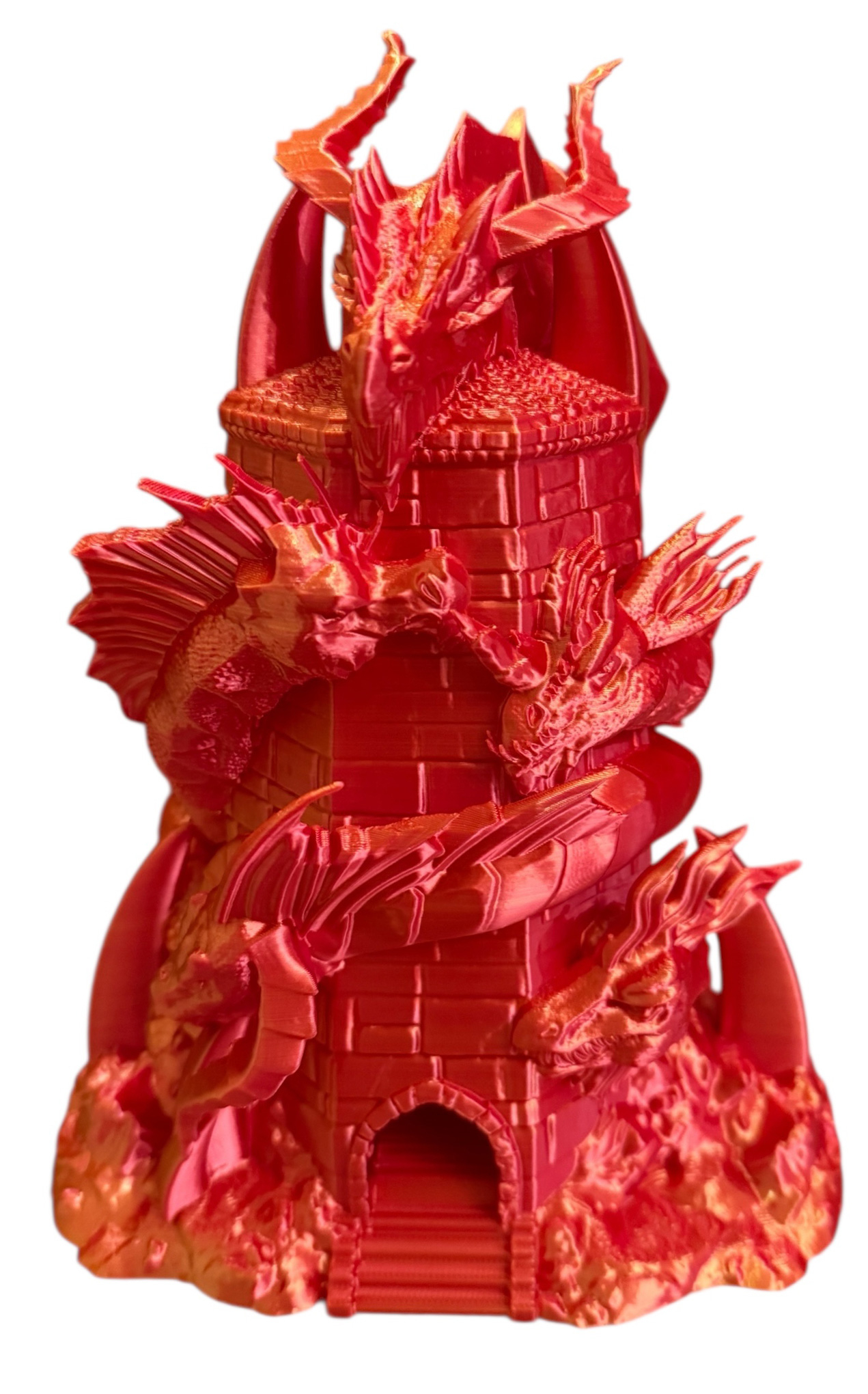 Cały czas uzupełniamy naszą kolekcję kolorów o przykładowe wydruki - postanowiliśmy w celu ułatwienia wyboru wydrukować jeden model we wszystkich dostępnych kolorach i dodać go na sklep - ten model to wieża do kości ze smokiem na wieży - zobacz go.